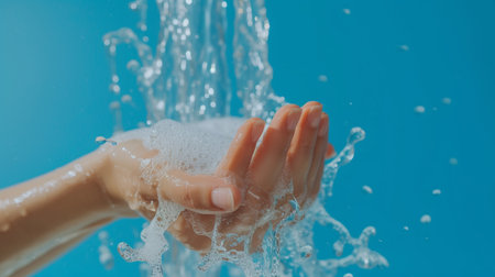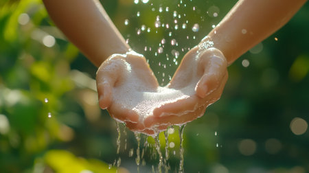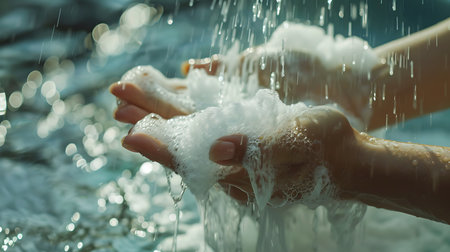 Hands cupping water with bubbles a symbol of cleanliness and refreshment.