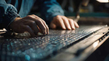 A skilled craftsman's hands delicately interact with a decorative glass bowl, showcasing the intricate artistry and dedication of manual craftsmanship in a workshop.