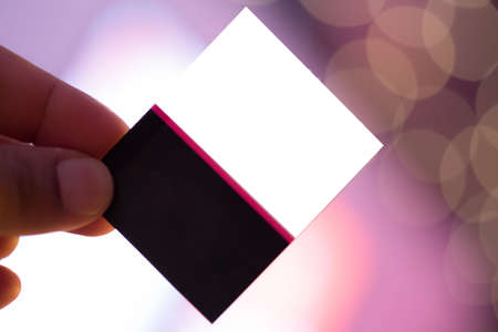 two hand hold blank card on blur background