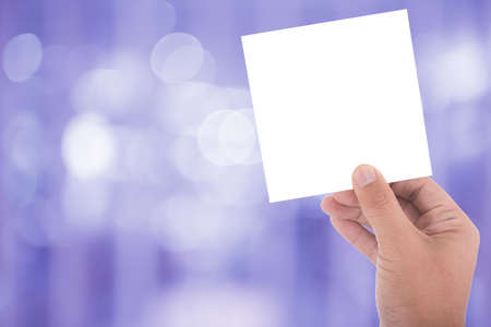 hand hold blank square paper over blur background