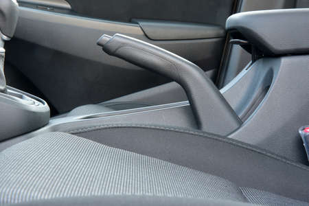 Car interior brake hand control close up modern car