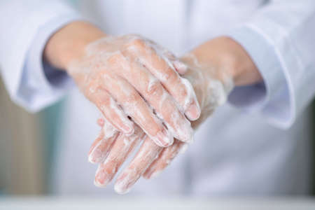The baby's soap hands on a light background.Clean hand concept idea. Health care Coronavirus protection.