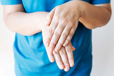 woman' hand are itching and scratching of skin diseases. Concept with Healthcare And Medicine.
