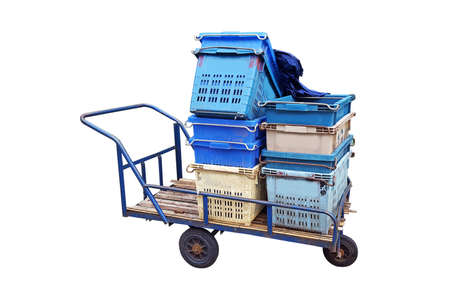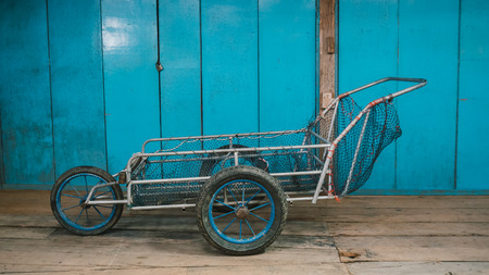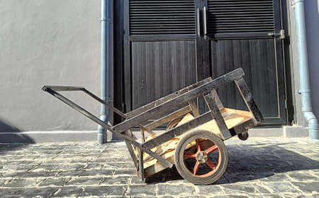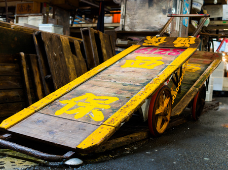TOKYO, JAPAN JUNE 28 - 2017: Old rusted Flatbed Cart inside of a building of the Tsukiji Wholesale Seafood and Fish Market in Tokyo Japan.