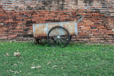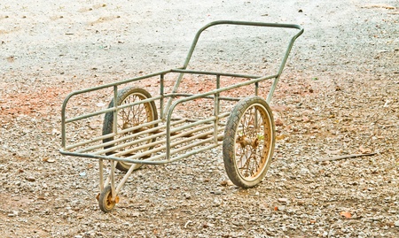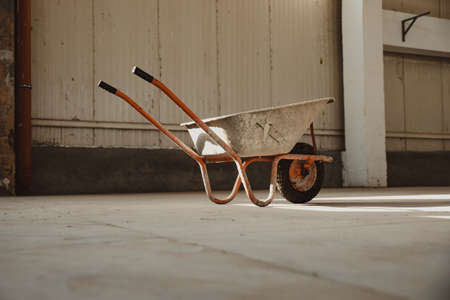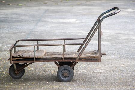 Part of the picture. Copy space of old condition cart with stains for transporting cement in construction.