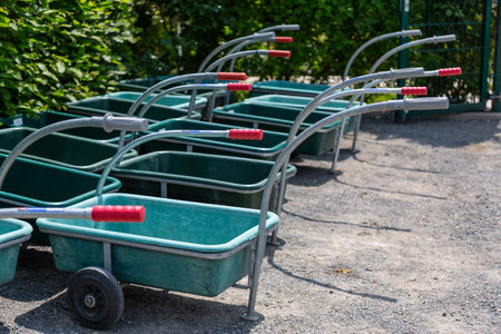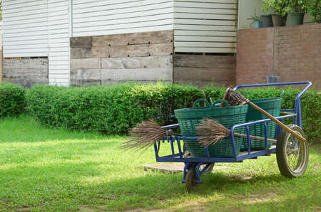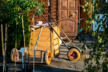 tools for working in the garden folded near the barn, a tool for landscape design of the territory
