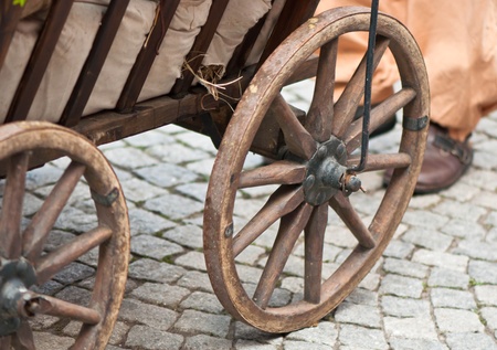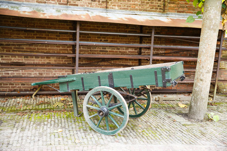 Antique wooden cart in a quaint old town, capturing the essence of historical charm