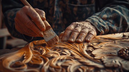 Skilled Carpenter Carving Intricate Designs on Wood for Artisanal Creations