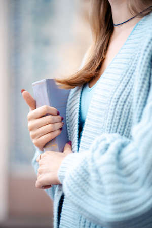 A person cradles a weathered book with a textured cover, standing against a soft, natural backdrop. The gentle light enhances the vintage feel, creating an atmosphere of nostalgia and reflection.