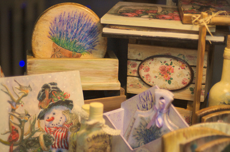 Colourful handicrafts are being prepared for sale in Kolkata by Indian rural worker. Handicrafts are rural Industry in West Bengal.