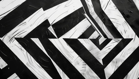 Black and white brushstrokes creating geometric patterns that evoke an optical illusion