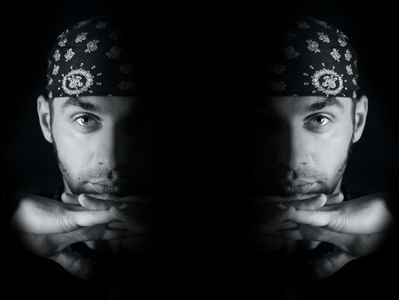Conceptual portrait with man surrounded by his multiple personalities. Depressed person with multiple personality disorder