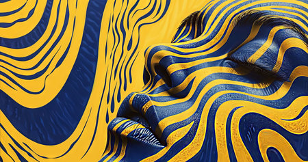 An AI-generated illustration of a person covered in blue and yellow liquid