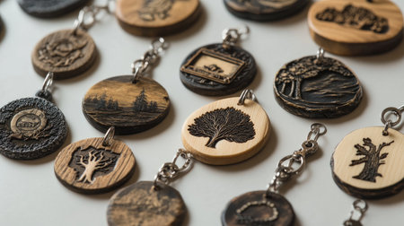 Discover a collection of handcrafted wooden pendants with intricate nature-inspired designs. Each piece features detailed engravings of trees and landscapes, perfect for adding a unique touch to your accessory collection or gifting to a nature lover.