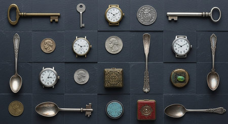 An AI generated illustration of a collection of vintage keys arranged on a white table