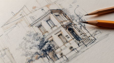 architectural sketch background with pencil-style drawing. Ideal for concept presentations, portfolios, or design storytelling.
