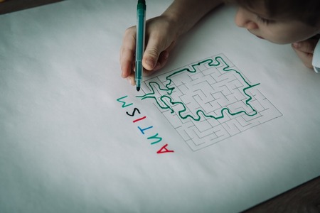 autims awareness- child solving labyrinth, mental care
