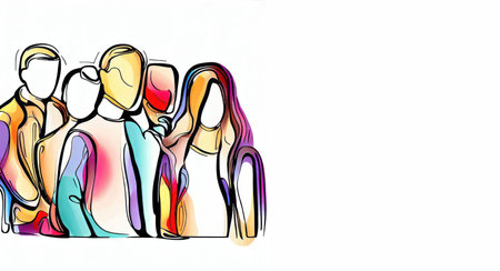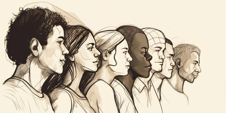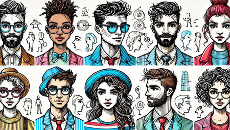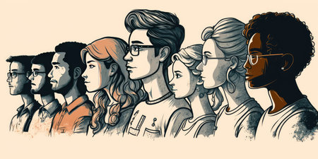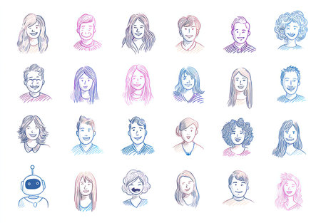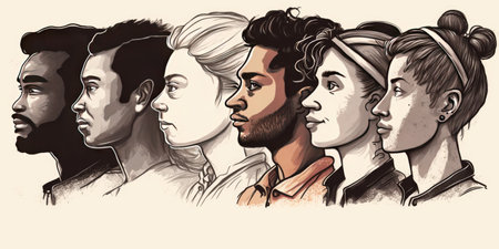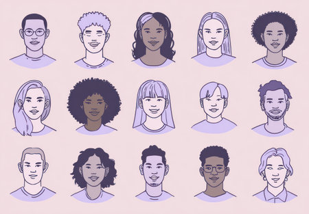 This illustration showcases a collection of diverse portraits, each representing a unique individual. The images are rendered in a clean, graphic style with soft colors and line art. The composition suggests a community of people, suitable for projects needing inclusivity and representation in media.