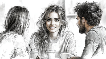 A lively discussion among friends enjoying coffee together, highlighting connection and camaraderie in a relaxed atmosphere.