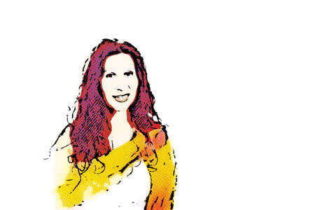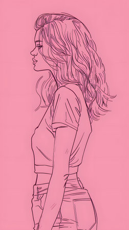 Portrait of a beautiful woman with curly hair. Hand drawn illustration.