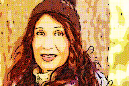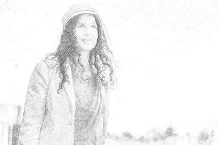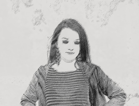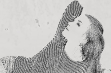 A black ink sketch of a woman with expressive strokes and intricate detailing, highlighting artistic creativity.