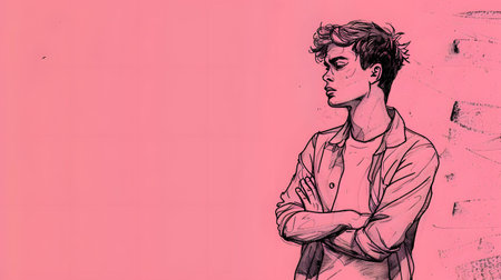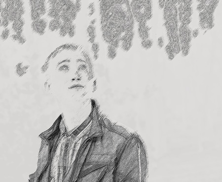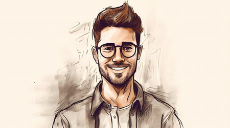 Portrait of a handsome young man with glasses. Hand drawn illustration.