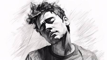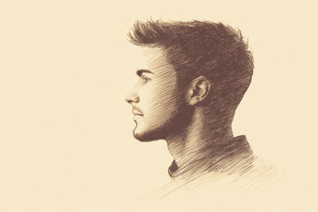 Artist hand actively drawing a human face portrait using charcoal on a white sheet of paper. highlights creativity, skill, and the artistic process.