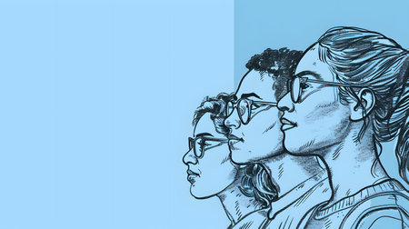 This illustration showcases a collection of sketched portraits, each depicting a different individual. The artwork features a variety of hairstyles and facial expressions, using a soft, colorful palette of blues, purples, and pinks. The composition is simple, suggesting a focus on the subjects' individuality. Ideal for editorial content or design projects.
