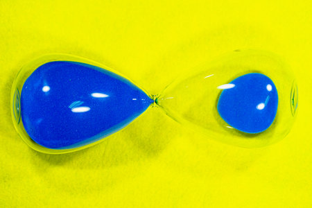 Blue hourglass on a yellow background.