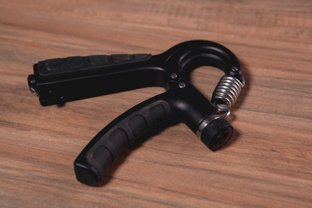 hand expander on the brown wooden table