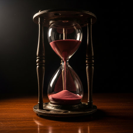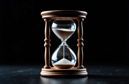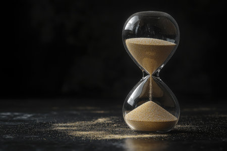 Hourglass with sand passing through, symbolizing the concept of time passing