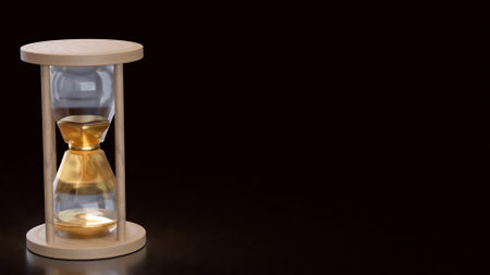 close-up Conceptual image of time passing. Hourglass on dark background. 3d rendering Hourglass with sand on dark background passing. flowing sand Concept of time and deadline