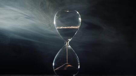 Hourglass on a black background where the mist swirl