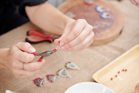 Woman make handmade jewellery.