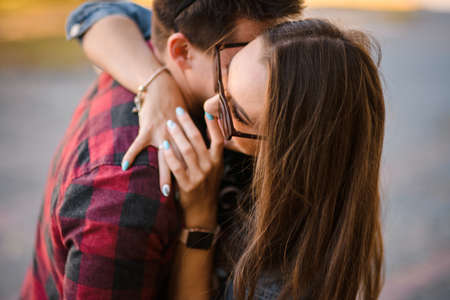 Happy young beautiful couple kissing.