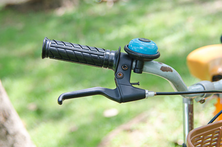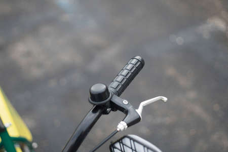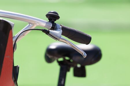 Bike bell detail on a vintage bike,parked outdoor. Selective focus, copy space.