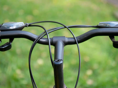 Detail of the handlebars of a mountain bike with a blurred background