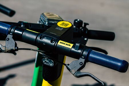 Tel Aviv Israel February 20, 2020 View of an electric scooter parked in the streets of Tel Aviv in the afternoon