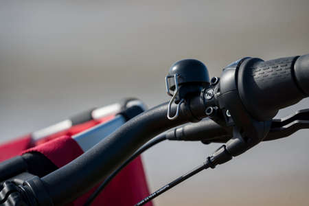 Bike bell detail on a vintage bike,parked outdoor. Selective focus, copy space.