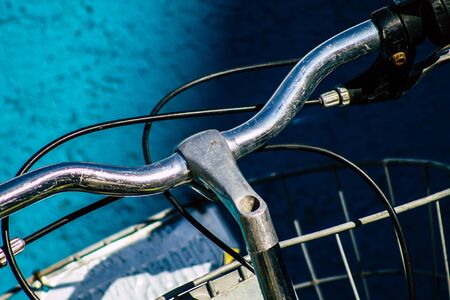 Tel Aviv Israel January 31, 2020 Closeup of bicycle parked in the streets of Tel Aviv in the afternoon