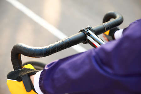 Cyclist s hands on handlebars demonstrating control in sharp turn summer olympics sports concept