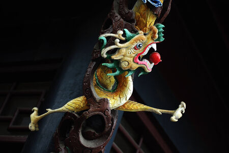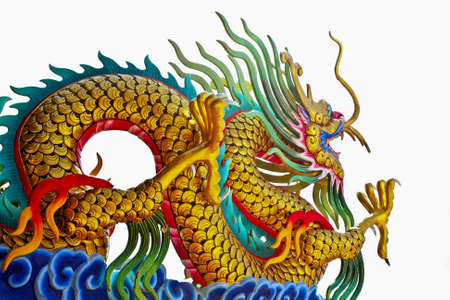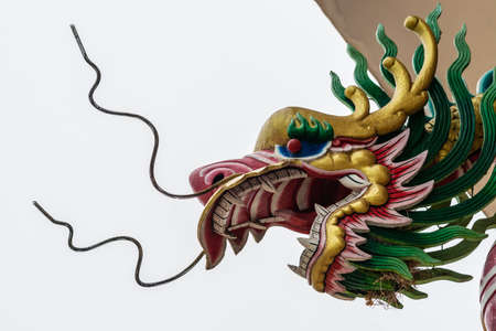 Close up colorful dragon statue. The statue of a Chinese dragon is the power.