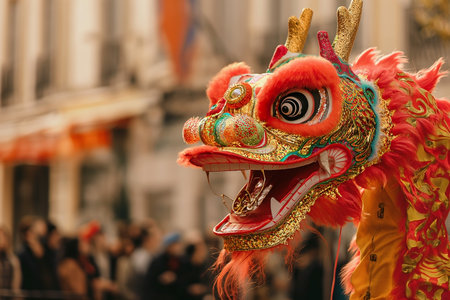 AI Generated. Colorful Dragon Dance Costume Head Close Up