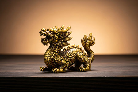 This captivating golden dragon statue showcases intricate details and craftsmanship, representing strength and elegance in decorative art for home interiors.