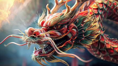 Dragon and Red Envelopes: A vibrant dragon with traditional red envelopes, symbolizing luck and good fortune.