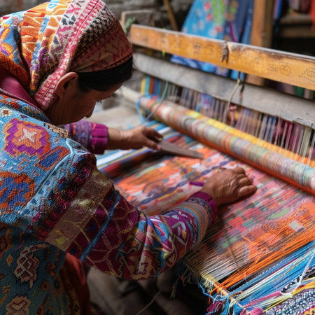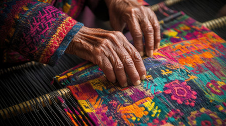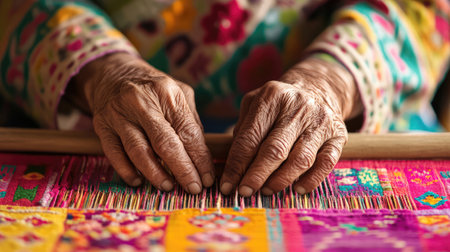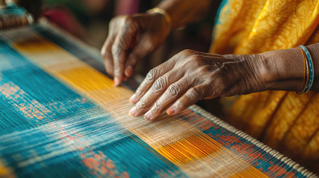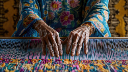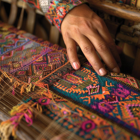 Close-up of artisan creating handmade textile with meticulous care, showcasing cultural heritage and craftsmanship