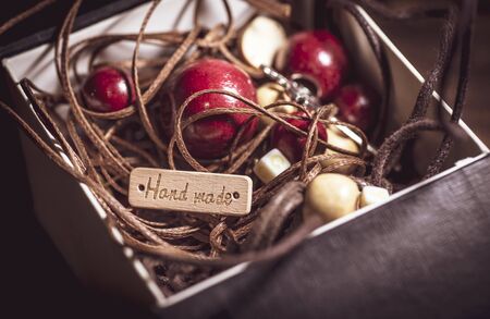 Materials for handmade decorations, leather, beads, ropes, buttons