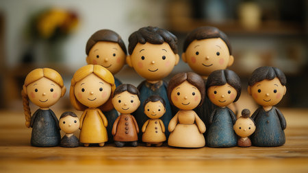a miniature 3D family, exuding cuteness and love. This charming scene captures the essence of familial bonds on a tiny scale, with intricate details that showcase the beauty of togetherness.