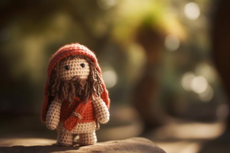 Handmade crocheted doll amigurumi. Knitted plush miniature textile cuddly doll. Generate ai