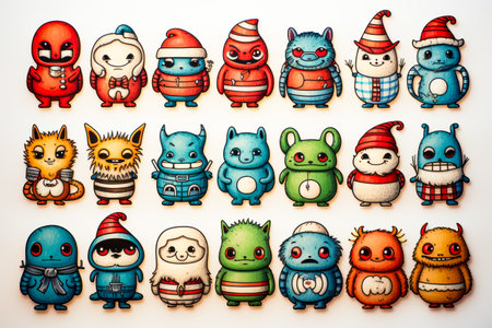 Illustration of a group of cute little felt monsters. Created with Generative AI technology.
